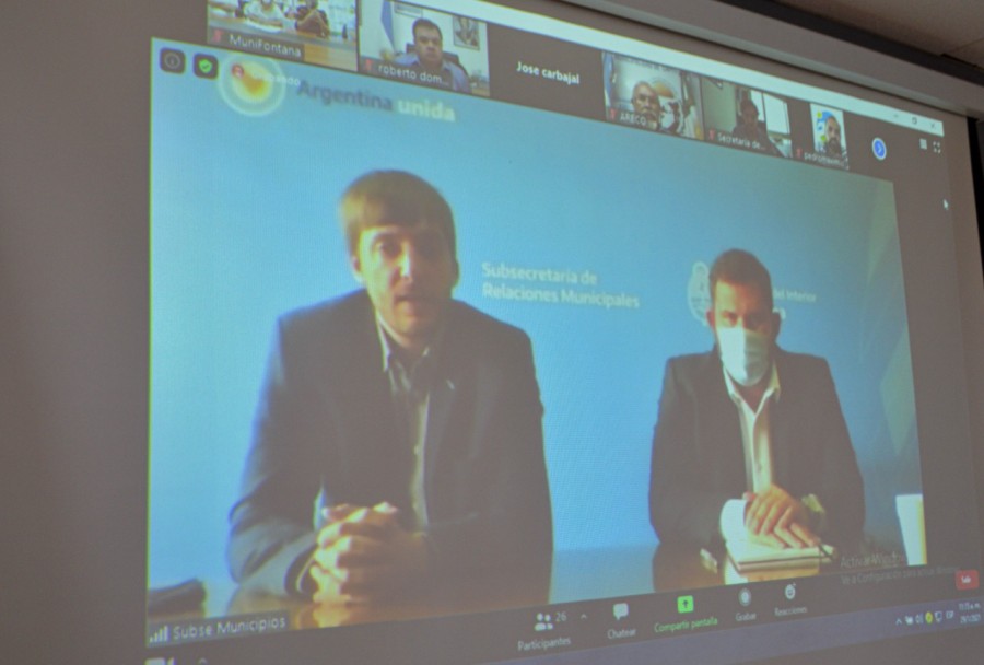Se realizó este viernes un encuentro virtual por videoconferencia entre la intendente de Fontana, Patricia Rodas, y miembros de su gabinete, con el subsecretario de Relaciones Municipales de la Nación, Pablo Giles, acompañado por el secretario de Municipios de la provincia, Rodrigo Ocampo.