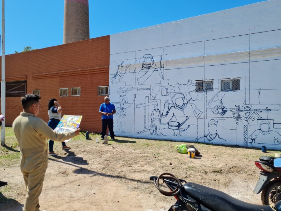 Emiliano Acevedo comenzó a trabajar la obra con dos charlas previas que tenían como objetivo explicar el concepto por el que atraviesa el mural y su mensaje. Las charlas estaban destinadas principalmente a los veteranos, combatientes y sus familias quienes también participan de ésta.